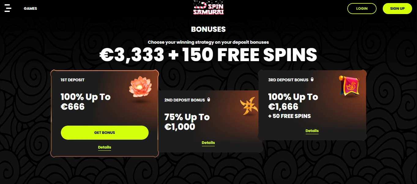 Another advantage is the welcome bonus available to every newbie on the site. Reload bonuses, gifts for high rollers, and other privileges are given out here. Read about this and more in our Spin Samurai casino review below.
